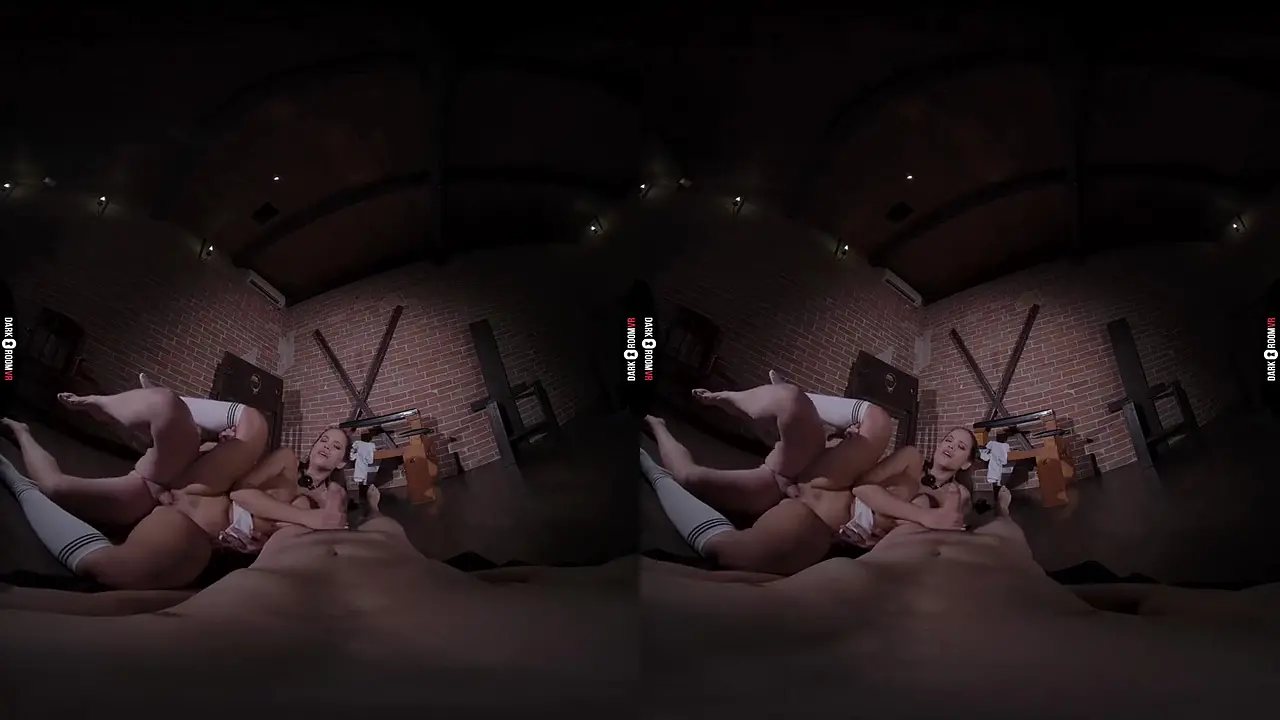 A tattooed, insatiable slut gets DP'd in a dark room while her guy records it in VR. Watch her take two massive cocks in her tight holes as she's restrained by her bondage gear. The rough threesome ends with a hot creampie and a memorable VR scene.