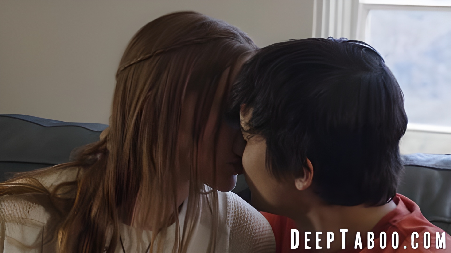 Sweet Laney Grey cries out during a spitroast trio with her lover and older man