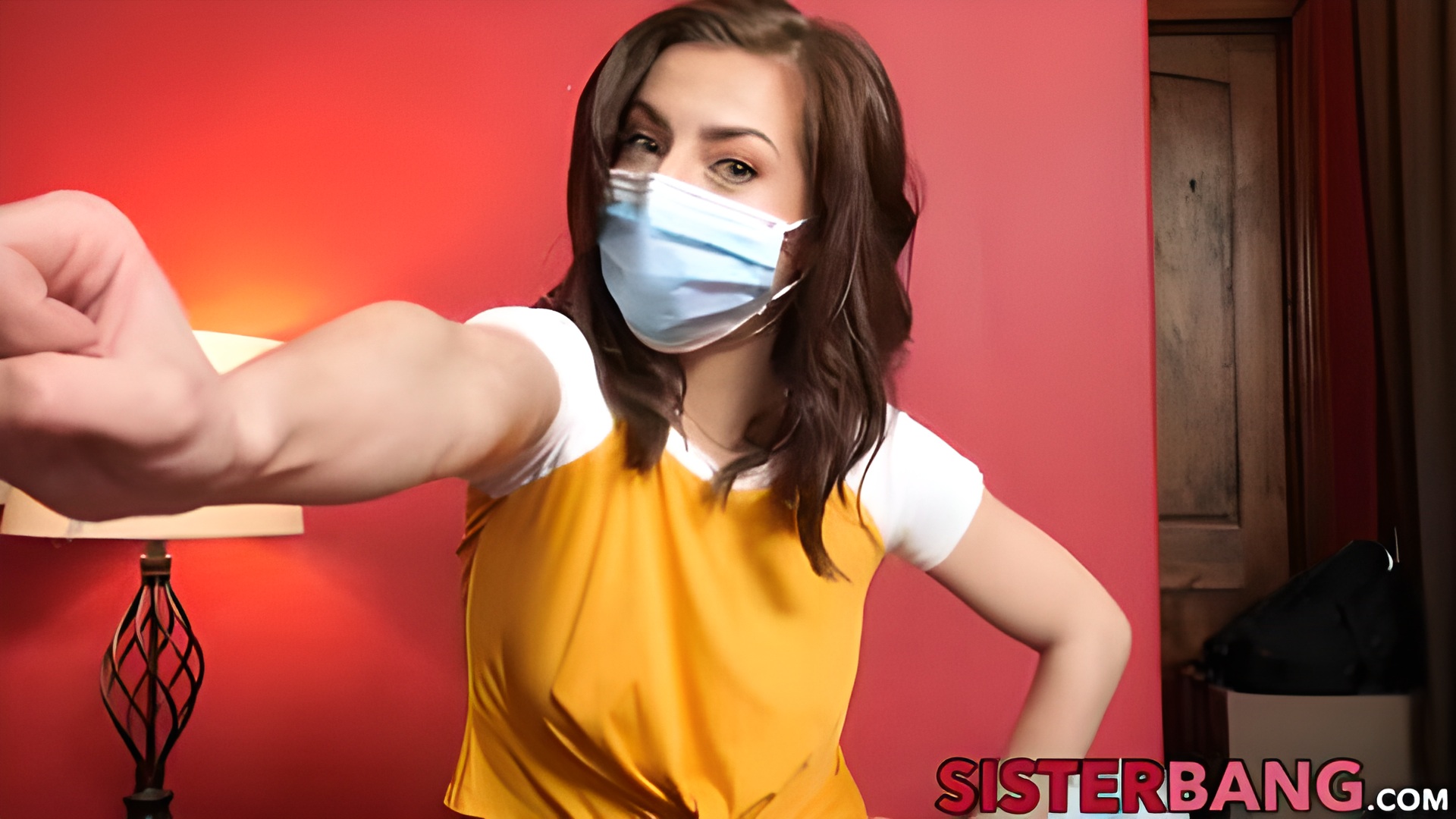 Voluptuous chick takes off mask to suck stepbrothers dick