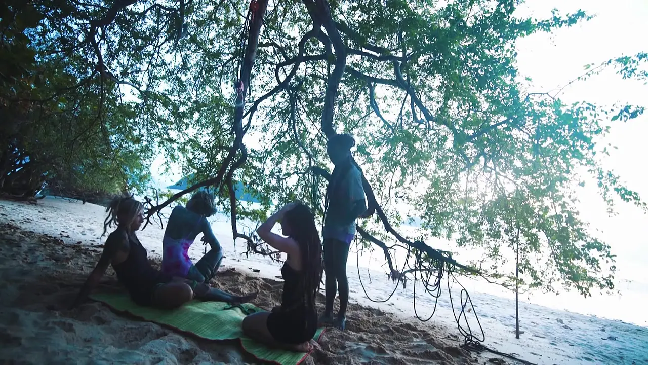 Three edgy, tattooed, and pierced alternative teens are bound in a rope fantasy. Their punk dreadlocks sway as they are dominated and teased in various positions. They wear their alternative styles proudly while being enjoyed by their partners.